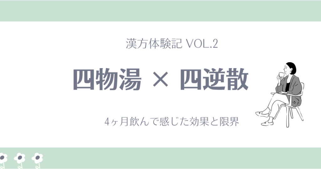 「四物湯×四逆散」をうつ症状やイライラ、不眠に悩む私が4ヶ月服用したリアルな体験談をブログで公開。血を補い気を巡らせる漢方の組み合わせで感じた効果と、減薬中の体調の支え、そして感じた限界まで等身大に綴ります。 -