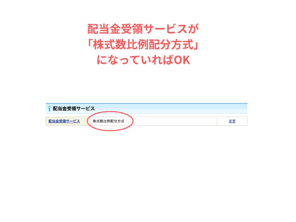 ただし、NISAで配当金を非課税にするためには、必ず「株式数比例配分方式」という受取方法を設定しておく必要があります。